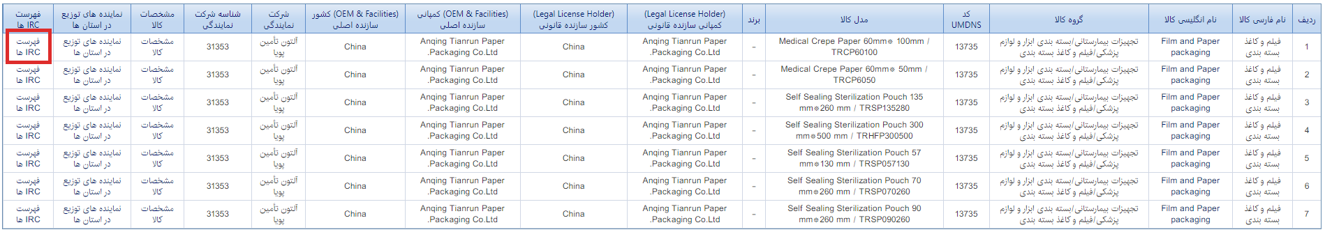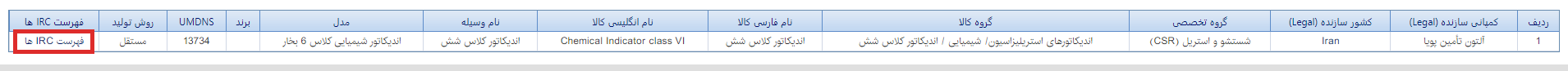 برای مشاهده IRC و GTIN هر ردیف بر روی کالاهای ثبت شده و سپس فهرست IRC ها کلیک کنید.