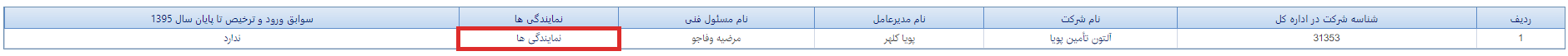 در این مرحله لیست نمایندگی های شرکت آلتون تامین را مشاهده میکنید، بر روی “لیست کالاهای نمایندگی” ردیف مورد نظر کلیک کنید.